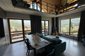 Второй этаж поднимается лестница из ореха расходясь на две стороны дома. С одной страны рабочая зона где можно комфортно поработать в окружении в окружение гор или прижать в гамаке, рождая идеи.