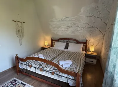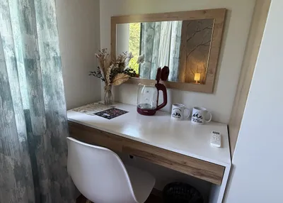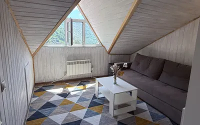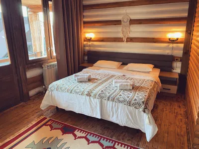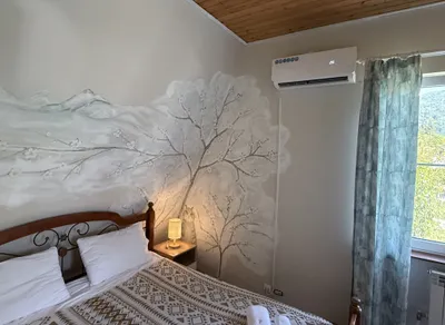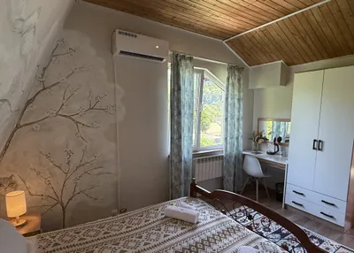 10 номеров со всеми удобствами. В номерах есть всё необходимое, свой санузел с ванной комнатой, большой балкон с шикарным видом на горы и на единственное озеро в Красной Поляне. Есть залы для практик и зоны отдыха