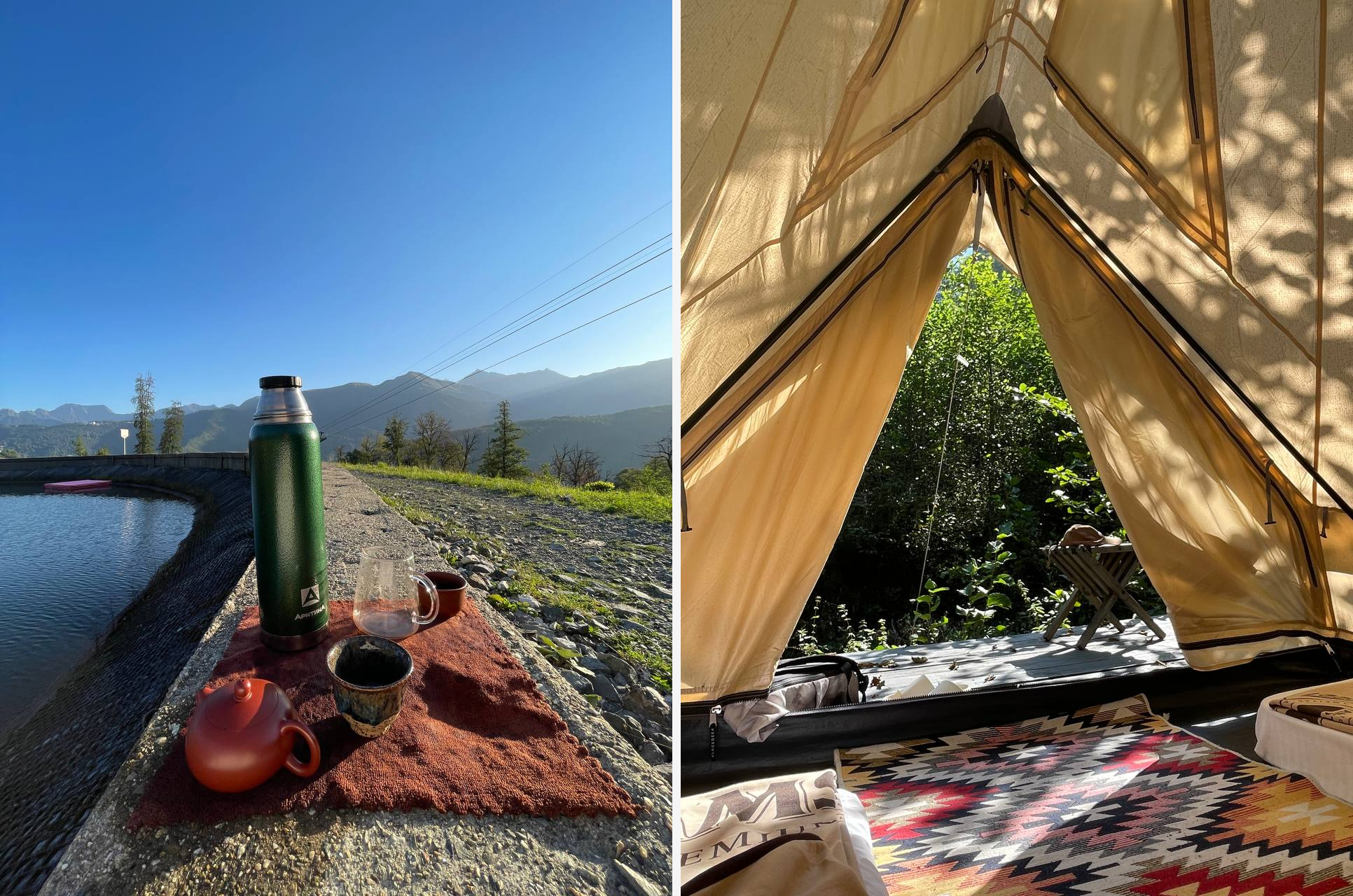 Обязательно сходите к смотровой площадке на закате. В это время горы окрашиваются в розово-золотые оттенки, выглядит космически красиво. Главное — не забудьте плед и термос с чаем. Осенними ночами в горах уже прохладно.